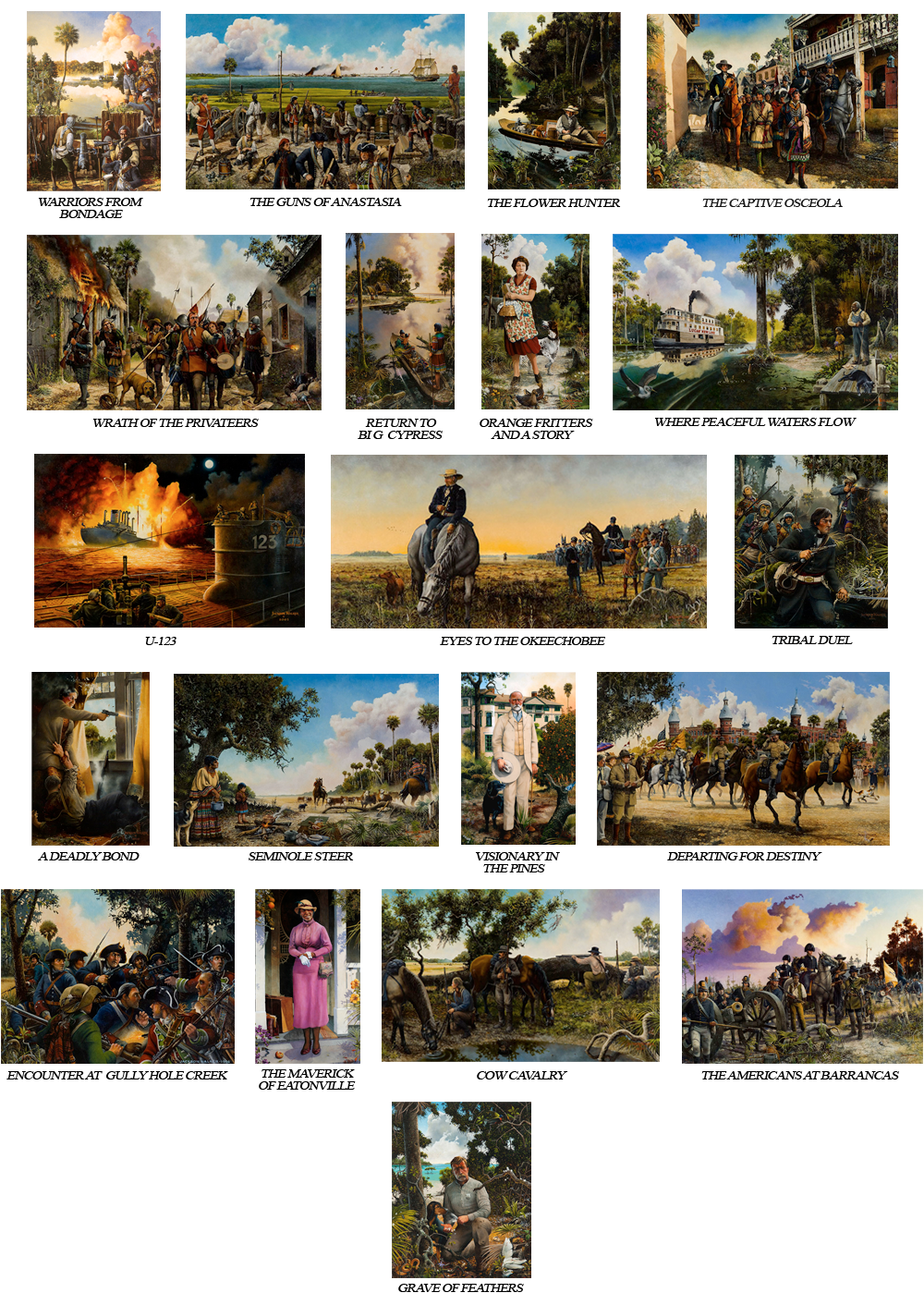 This collection of historical stories and characters from Florida history was purchased in 2006 by the Museum of Florida Art located in DeLand, Florida.